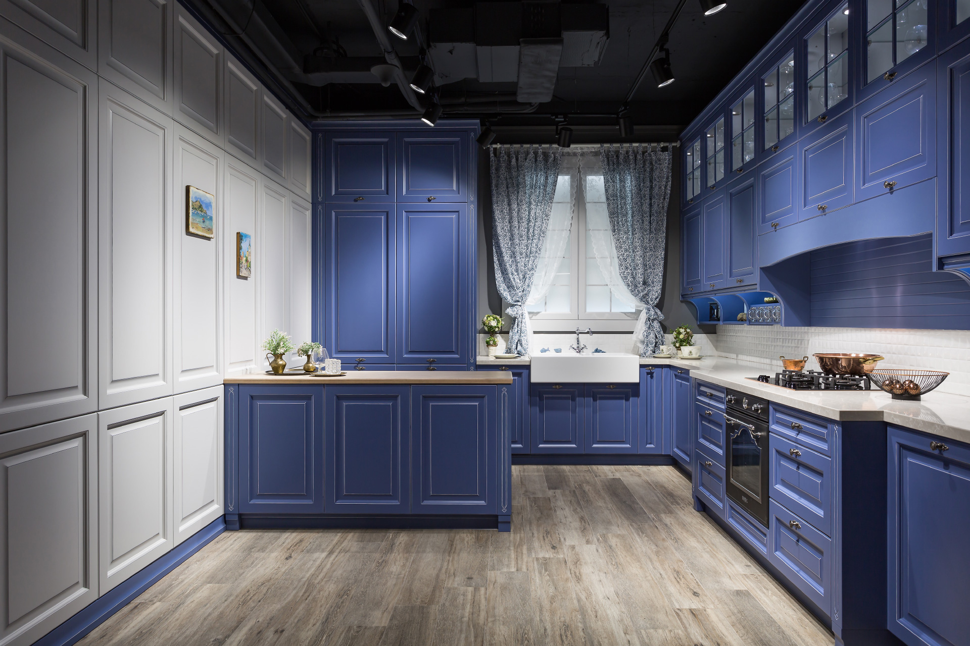 lak šedomodrá mat s bílou patinou / lak bílá mat s šedou patinou